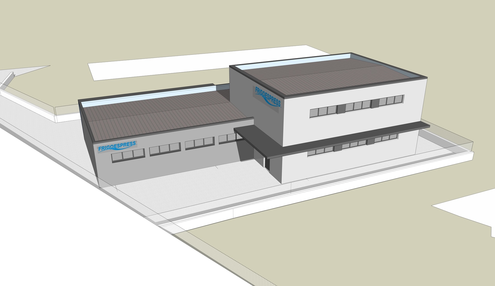 L’intervento prevedeva la realizzazione di un nuovo capannone per lo sviluppo di tecnologie industriali relative a celle frigo e refrigeratori. L’edificio è collocato nel contesto industriale della città di Trento ed è stato realizzato come due volumi incastrati, uno dedicato allo stoccaggio della produzione ed uno, realizzato a due piani per l’esposizione dei prodotti. I prospetti sono caratterizzati dall’uso di finestre a nastro, con il fronte sud che ospita l’ingresso principale ed il fronte ovest dove vengono caricate e scaricate le merci. L’edificio presenta una copertura leggermente inclinata, oscurata grazie alla realizzazione di un muretto perimetrale, che fa percepire il tetto come se fosse piano. L’edificio è molto compatto e ciò permette di risparmiare sui costi energetici.