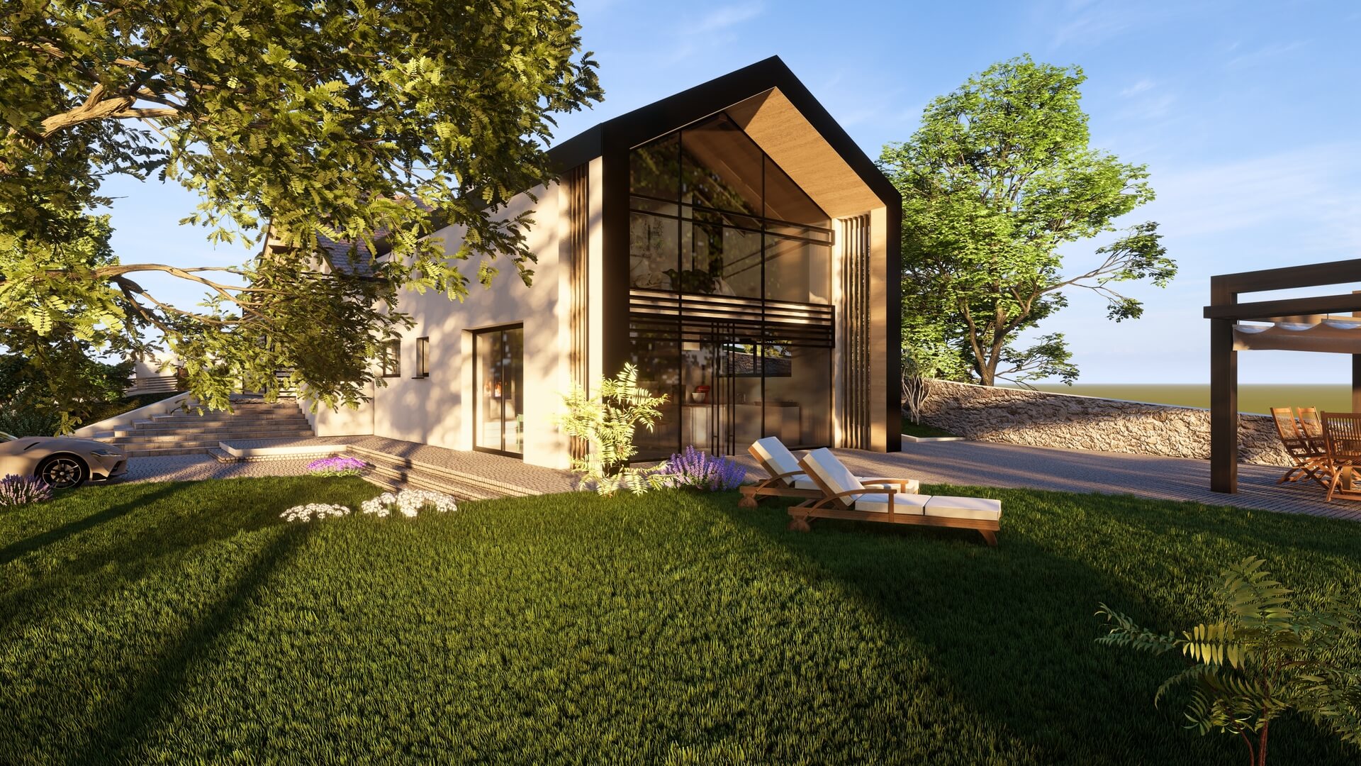 Il progetto prevede l’ampliamento dell’abitazione esistente tramite la prosecuzione del fronte sud della struttura, con un’aggiunta realizzata in perfetta sintonia con le preesistenze. L’ampliamento previsto permetterà di ampliare sia la zona giorno posta al piano terra ma anche la zona notte del piano superiore, grazie alla quale è stato possibile ripensare alla nuova stanza padronale. Nel progetto di ampliamento è stato rivisto anche l’ingresso dell’abitazione realizzando una sorta di rivestimento che funge anche da parapetto per la terrazza della zona notte. Le ampie vetrate permettono di integrare lo spazio interno con la natura esterna creando un forte legame.